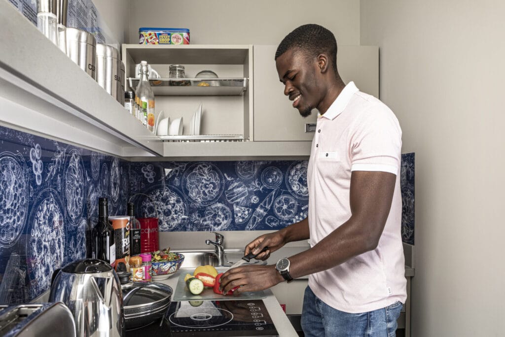 - Bigger room compared to silver, en-suite bathroom, fully fitted kitchen, comfy bed, wardrobe, and a spacious work desk